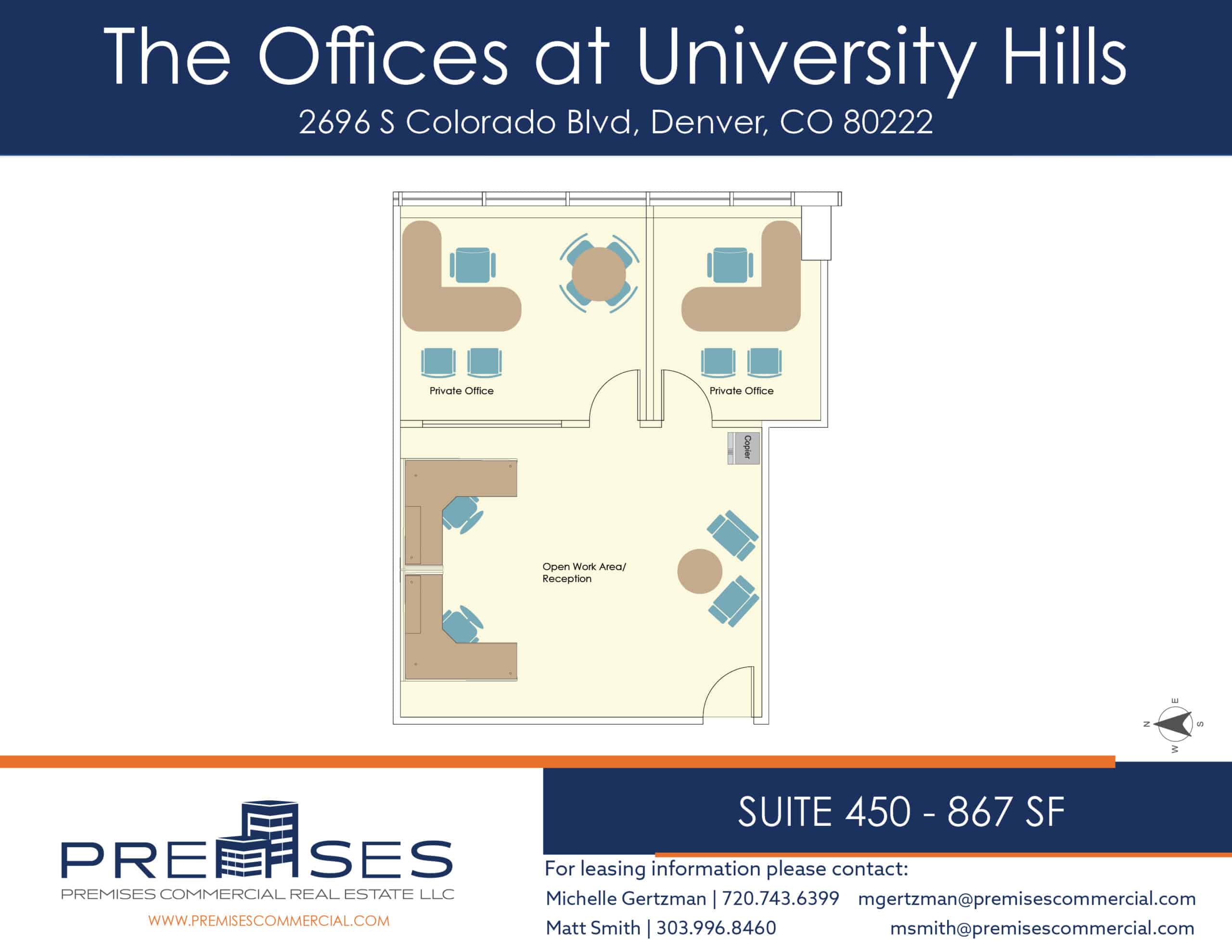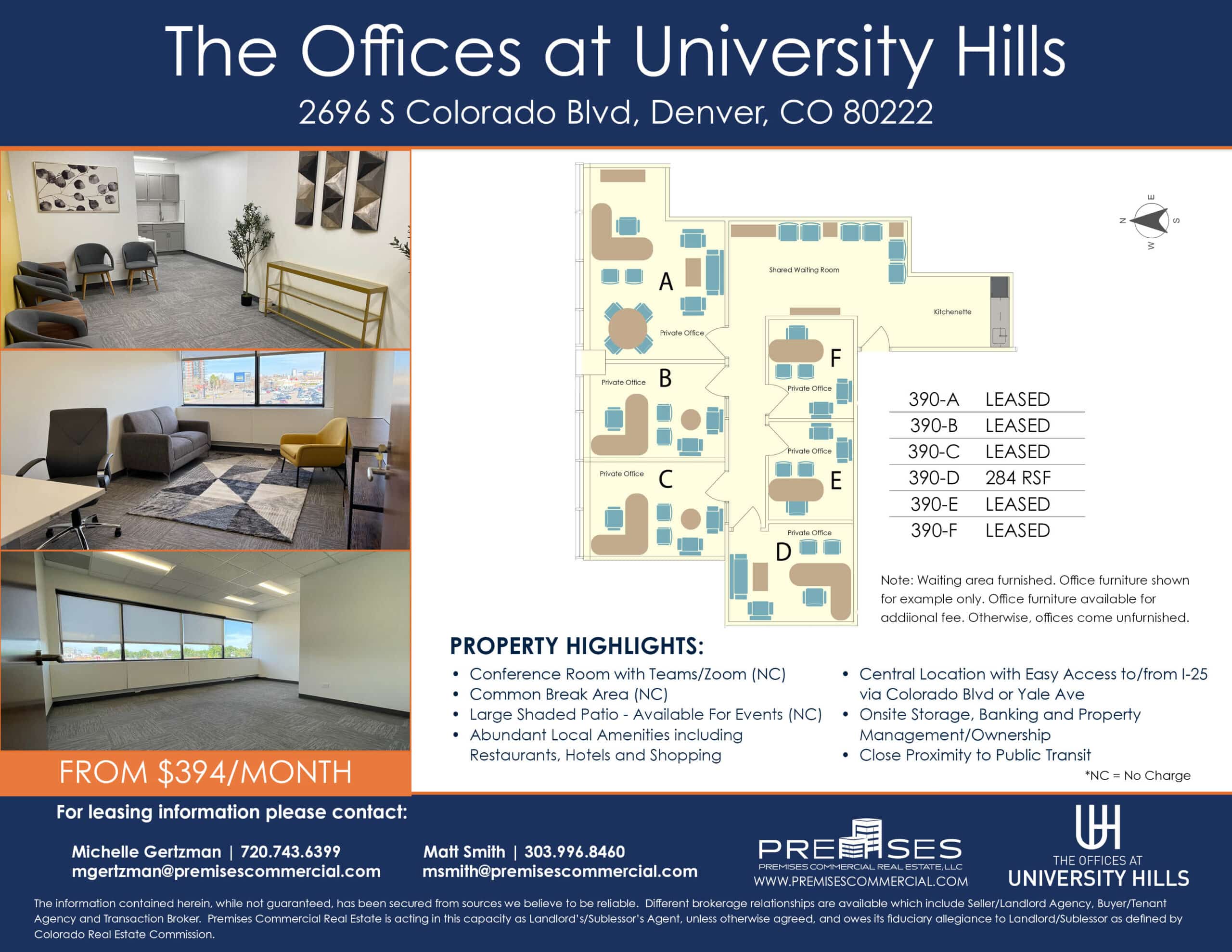 - Central Location with Easy Access to/from I-25 via Colorado Blvd or Yale Ave